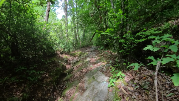 It didn't take long for the Jones Gap Trail to become highly technical rocky terrain, with many different rock sizes and numerous rock waterbars across the trail for drainage. At this point I was just gliding along at my comfortable pace, happy to have so much trail running experience under my belt. The other runners ahead of me slowed down drastically to navigate the rocks. I quickly found myself in second place just by virtue of running a clean, smooth line.